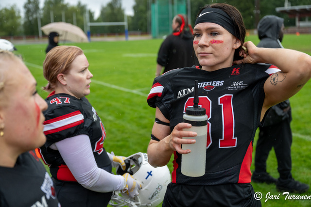 Turku Trojans kaatoi Helsinki Wolverinesin varsin selvin 33-0 numeroin naisten Vaahteraliigan finaalissa. Turkulaiset hyppäsivät kuskin paikalle ottelussa heti avausneljänneksellä ja tekivät kaksi touchdownia Laura Pulkkisen ja Sunelle Coetzeen juoksuilla. Wolverinesin ensimmäiset draivit pysähtyivät Hilma Kuitusen ja Essi Saastamoisen hyviin taklauksiin ja rähmättyyn palloon.