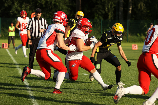 Bernatin olis pitänyt saada EUK siitä pallon kans juoksemisesta, mutta dumareilla ei riittänyt pokka. Eli 15 jaardia ja yksi yritys Wolvoille.